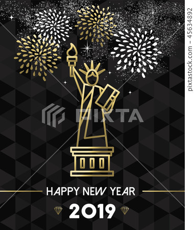 New Year 2019 Nyc Usa Travel Statue Liberty Gold Stock Illustration 45634892 Pixta